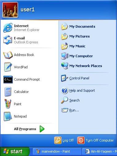 The Start menu has a number of different options and programs. This is where you start up most applications.